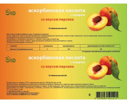 • Аскорбиновая кислота с сахаром ЭКО таблетки Персик 0,025г 2,9г N10